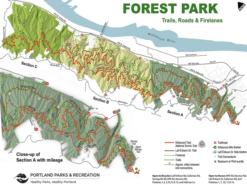 FOREST PARK: One of the country's largest urban forests, this complex system of parks and trails is a mix of old growth and second-growth forest situated near the downtown area in the northwest portion of the city. Some aspects of the forest spill outside of the park into spaces rarely traveled by humans, leading to legends of a strange dark wood deep at its center and stories of local cryptids inhabiting the park.