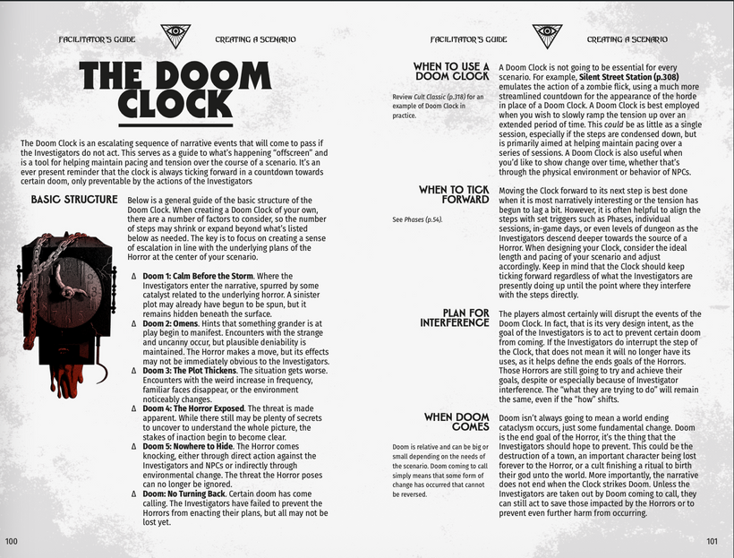 During this step of the planning, creating a Doom Clock will aid in keeping track the actions of the monster as well as the other interested parties.